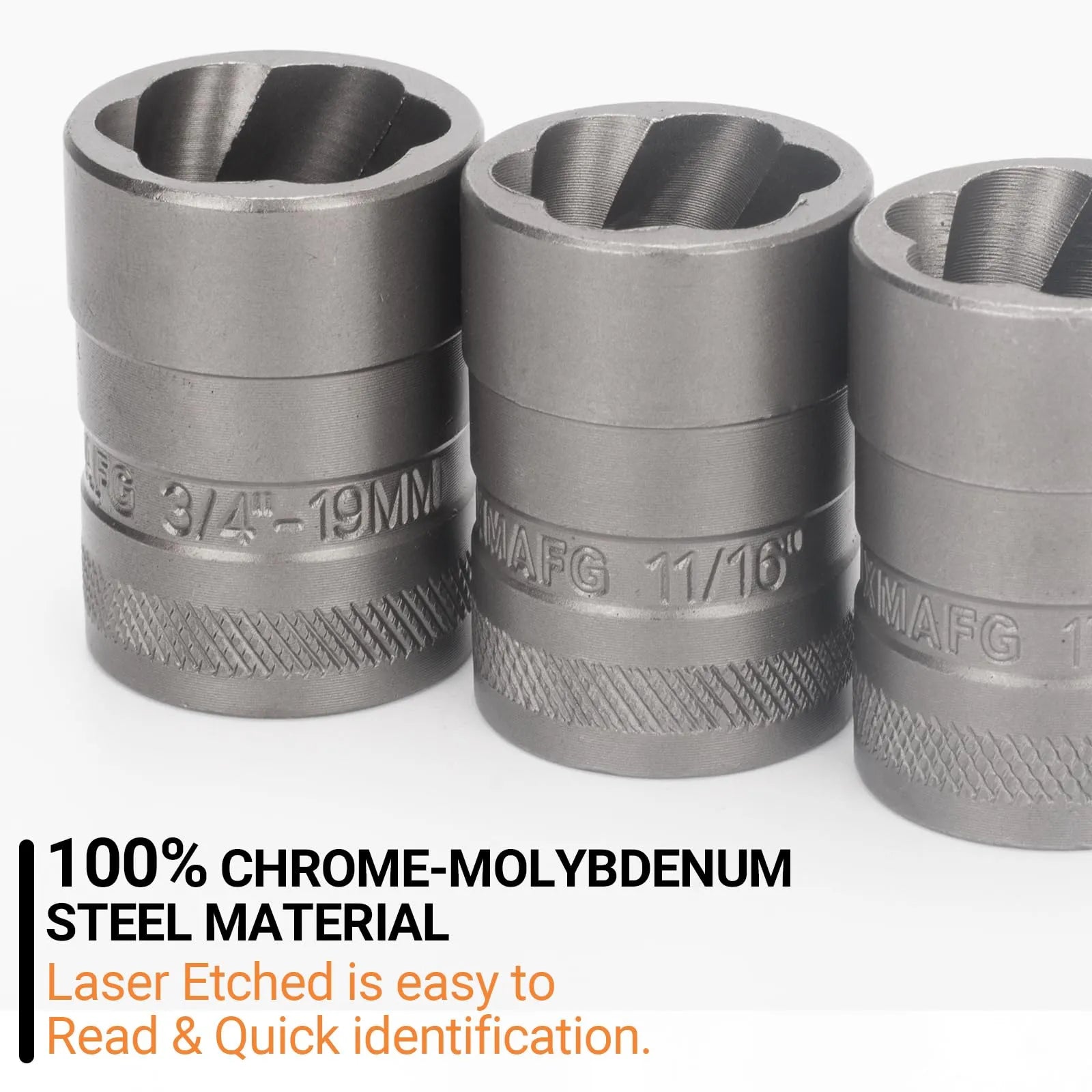 - CR-MO Steel: The impact bolt & screw extractor kit is made of high-carbon steel (chrome molybdenum steel) for superior durability and longer life. Every stripped screw remover is precision-engineered so you can keep working on your most challenging projects.