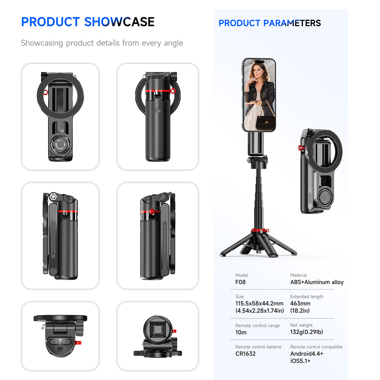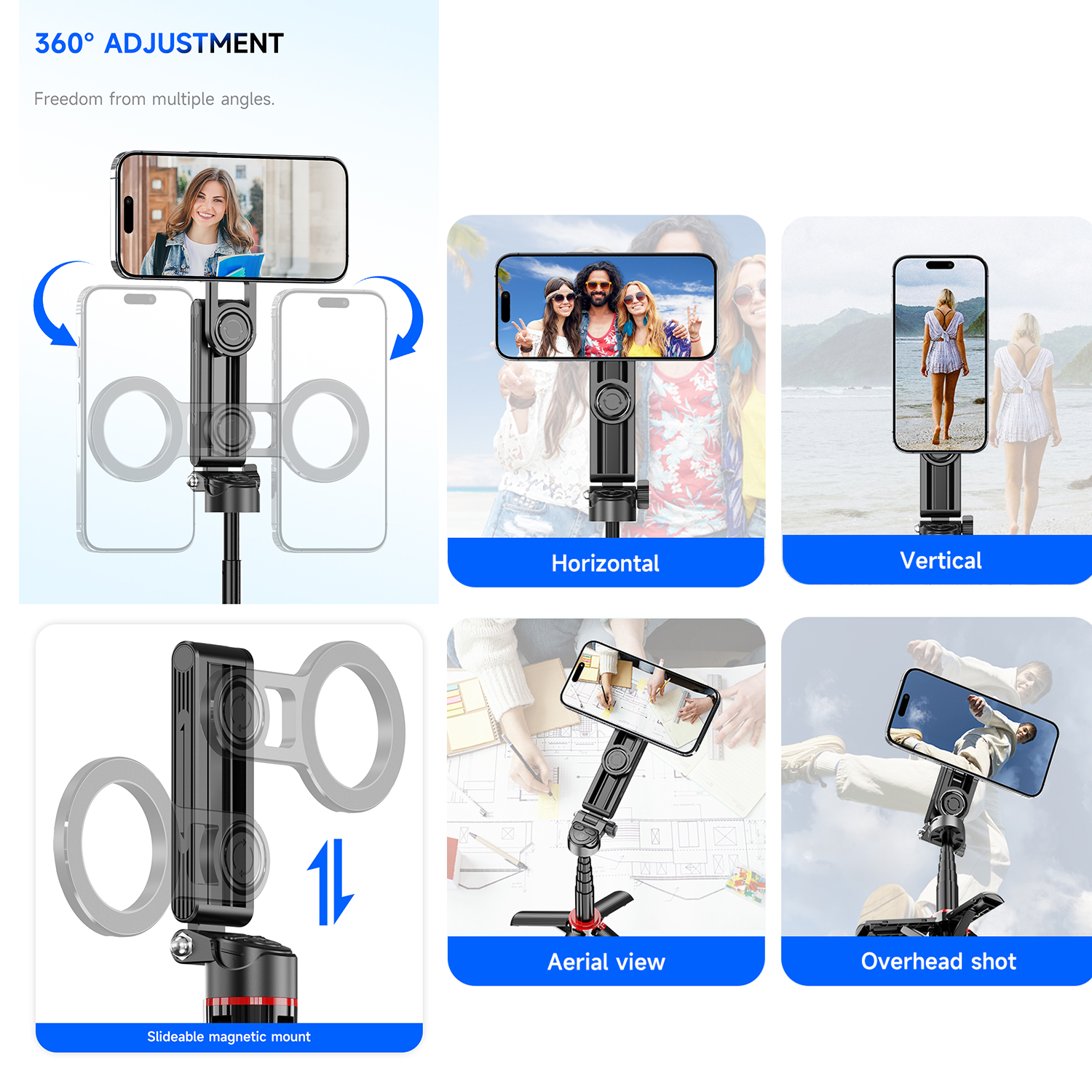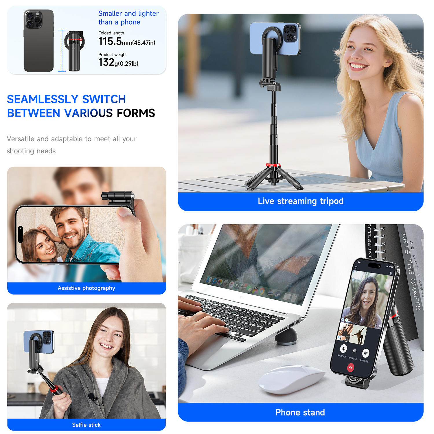 - 4-in-1 Multifunctional Design: Functions as a handheld selfie stick, tripod, phone stand, and magnetic mount—versatile for daily use.