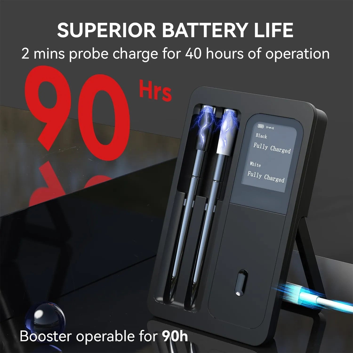 - Longer Battery Life: With a booster that lasts over 90 hours and a cooking probe that lasts over 40 hours without frequent recharging, this digital meat thermometer is perfect for slow cooking recipes and large gatherings.