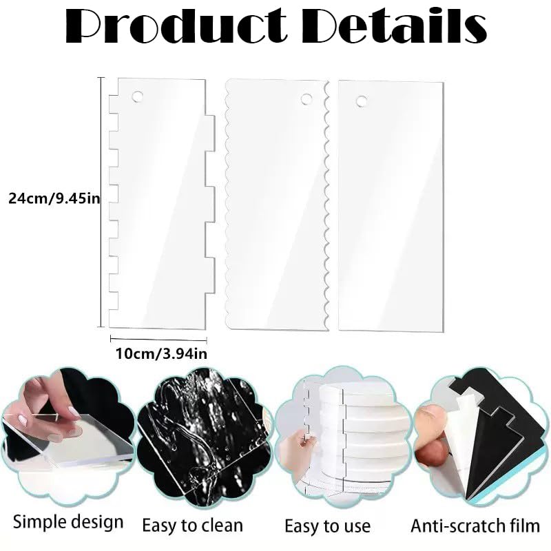 - DOUBLE-SIDED DESIGN: Each scraper features two distinct edges with unique textures for creating various decorative patterns on cakes