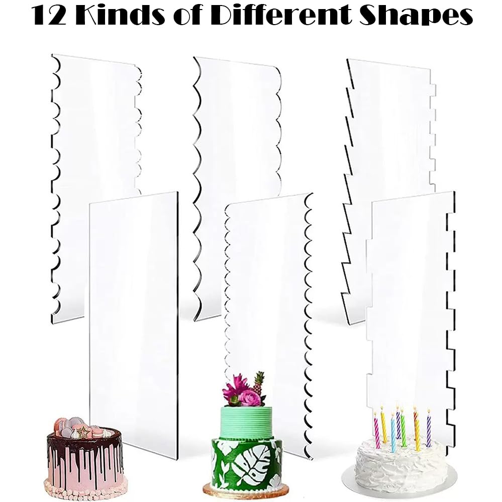 - COMPLETE SET: Includes 6 professional-grade acrylic cake scrapers with different pattern designs for versatile cake decorating needs