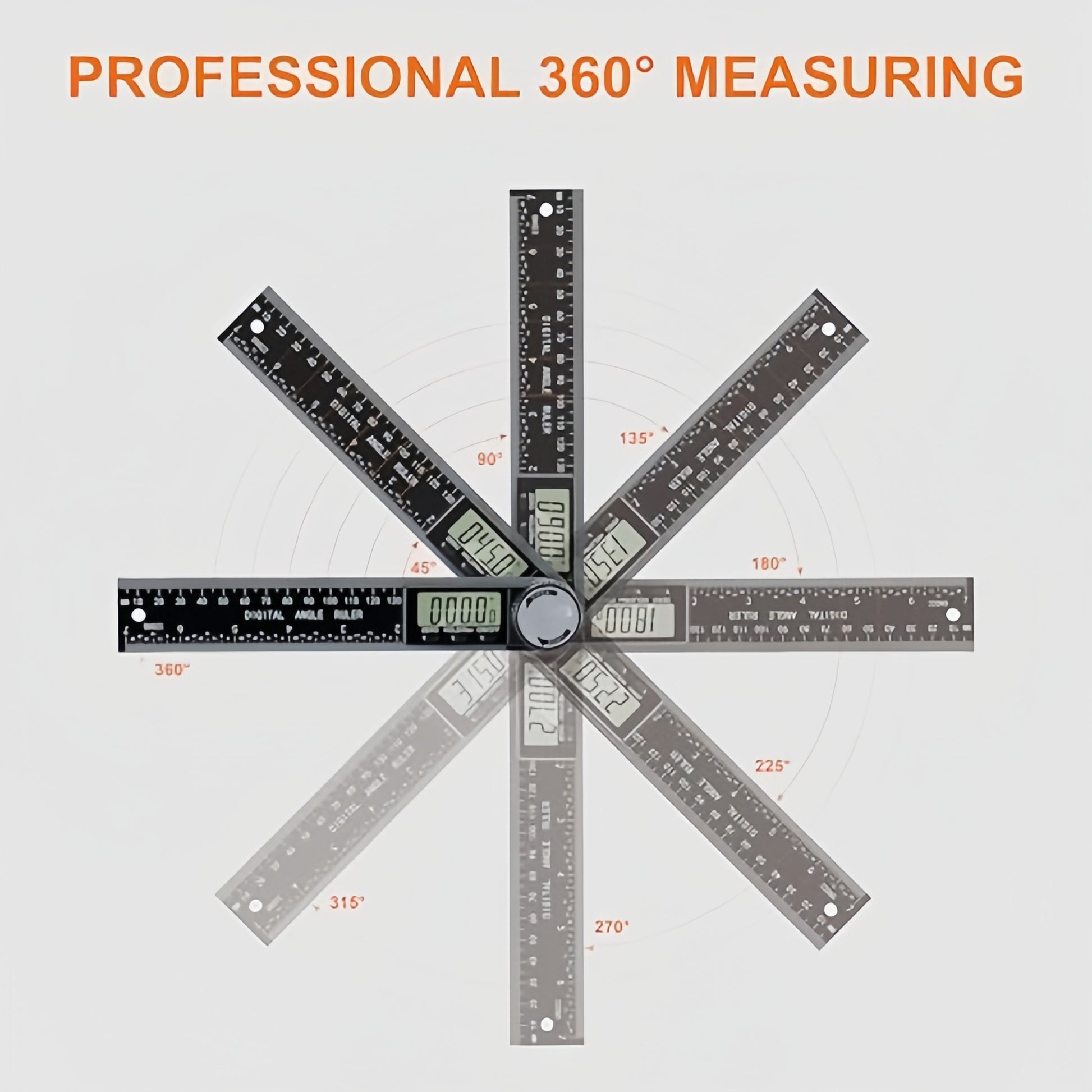 - Professional 360° Measuring Tool: Experience unparalleled accuracy with our digital protractor, designed for precise angle measurement. Measuring range: 0–360°. Accuracy: ±0.3°. Resolution 0.05°