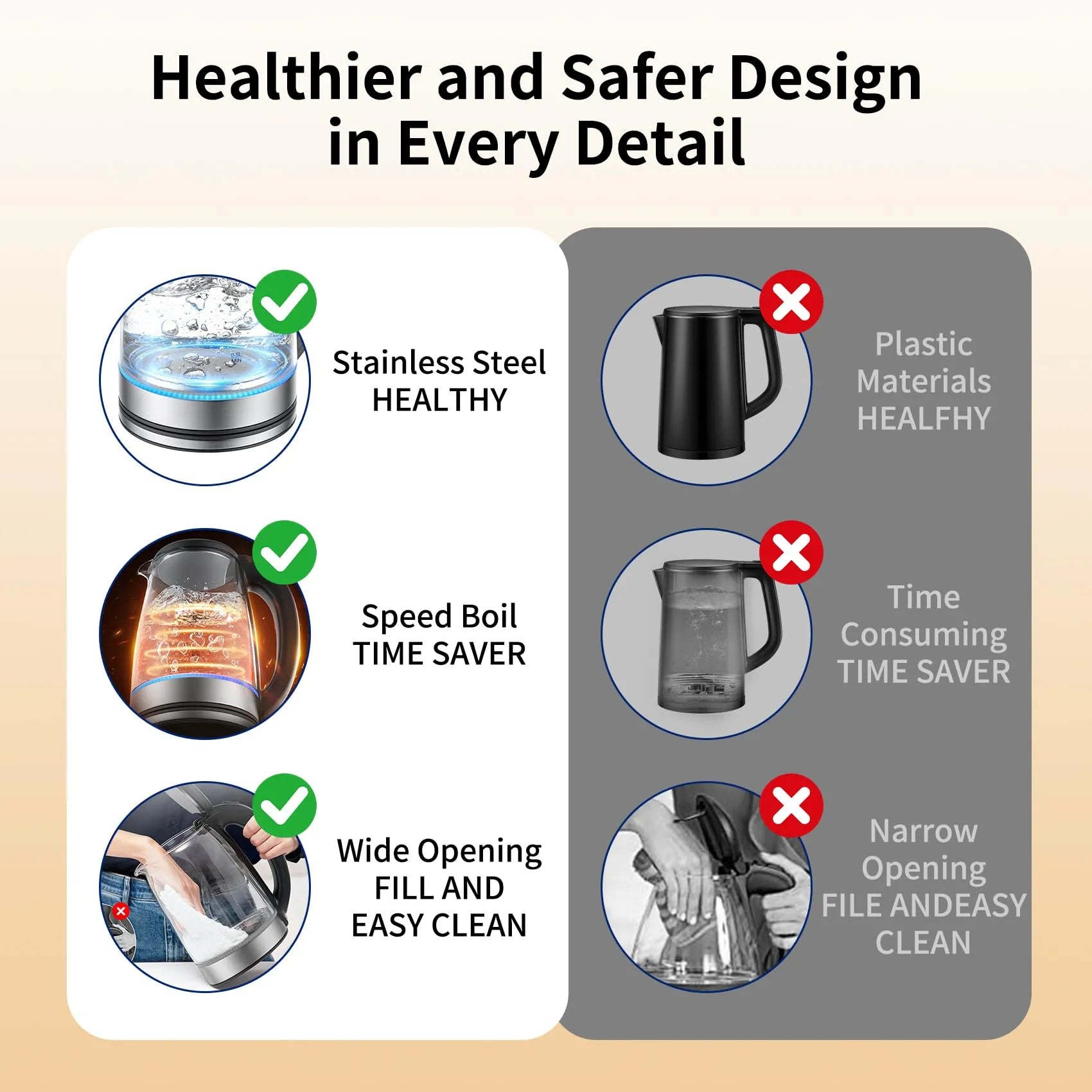 - Wide Opening & Removable Lid – Easy to Clean: Designed with a lift-off lid and wide mouth, this glass electric kettle allows for effortless filling and deep cleaning—no more struggling with narrow openings
