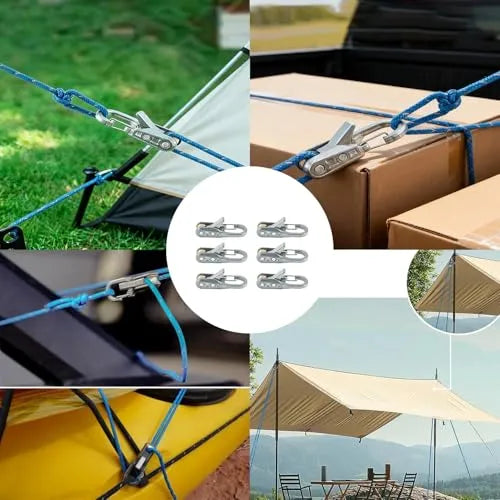 - Hassle-Free Rope Control: Whether you’re camping, boating, or setting up a backyard tarp, this compact rope tension adjuster makes securing ropes easy, fast, and utterly reliable Built to Last, it provides reliable tension control and easily handles wind, rain, and other outdoor challenges.