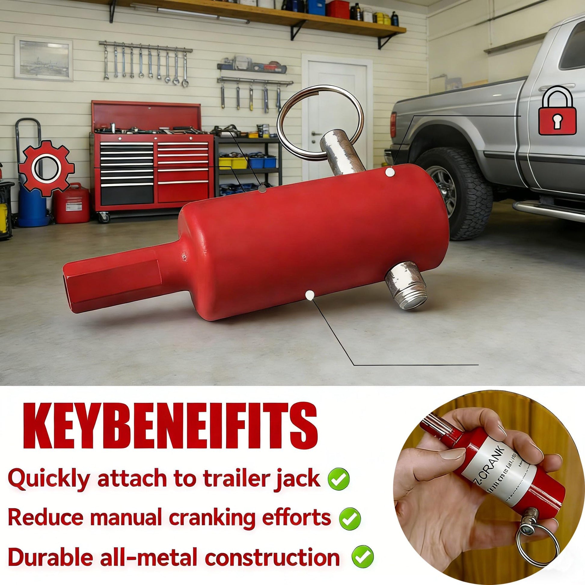 10x Faster Trailer Jack Operation:Transform any electric drill into a high-speed trailer jack driver with this adapter—delivering a 10x speed boost compared to manual cranking. Slash the time and effort required for every trailer lifting/lowering task.