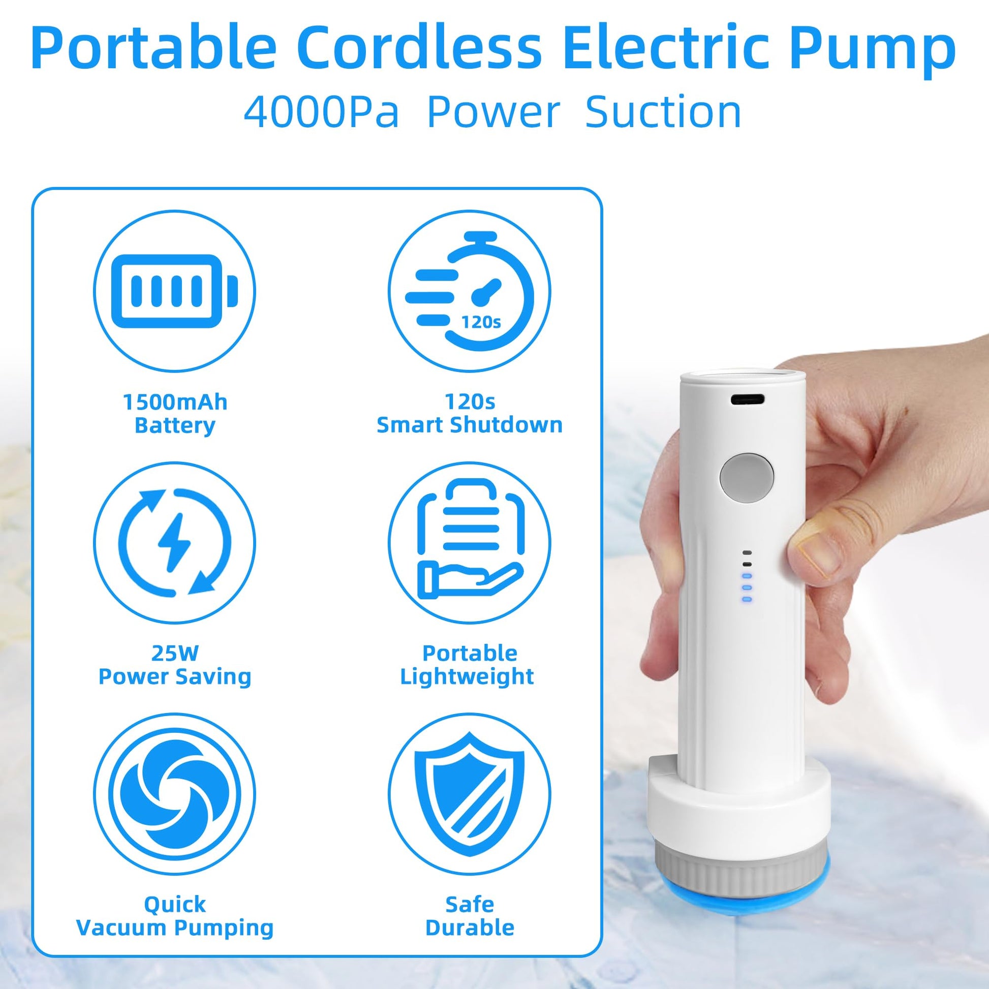 - 【Electric Air Pump Replaces Hand Pump】Our electric vacuum pump for vacuum storage bags quickly compresses clothing and other fabric items with one-click operation, more effort-saving and efficient than hand pump. The package includes one charging cable
