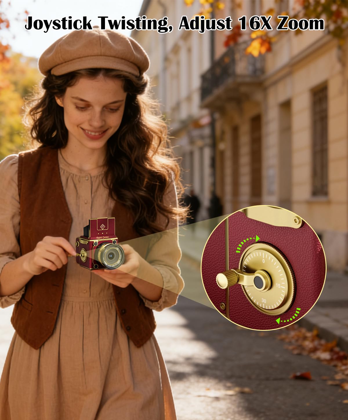Precision Focus & Creative Filters:Capture every detail with this 2.7k digital camera for photography. It features responsive autofocus and a 16x digital zoom controlled by a tactile manual joystick. This camera digital includes built-in creative filters (Vintage/B&W) to stylize your shots effortlessly, making it a top choice among photography cameras for beginners and a versatile digital camera 2.7k.